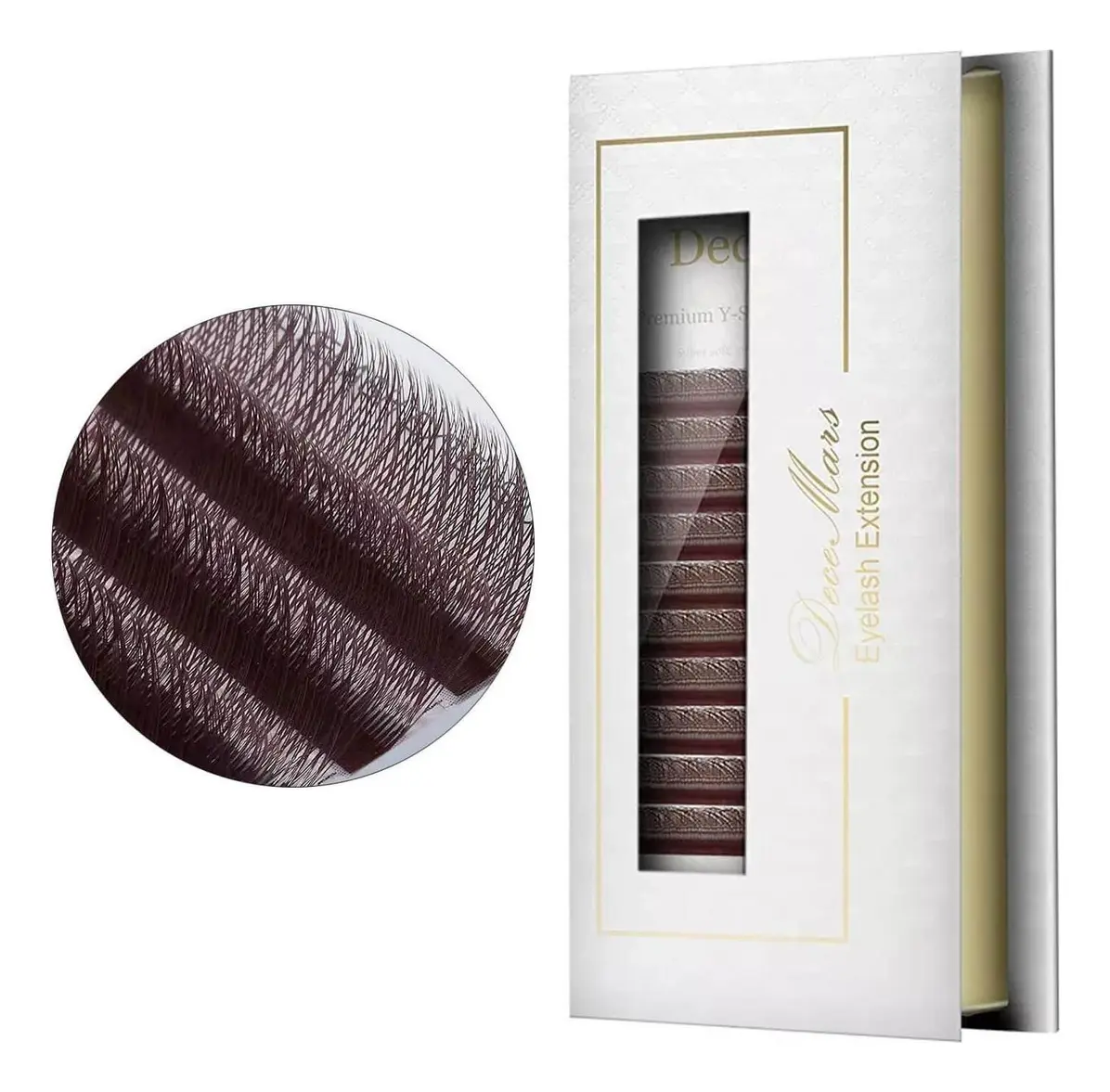 Os cílios Decemars são ideais para criar o Volume Brasileiro, uma tendência atual. Combinam a técnica do alongamento clássico (fio a fio) com o resultado das técnicas de volume. O fio Y tem 4 fios unidos em um só, com 2 fios para cada lado, proporcionando um efeito volumoso de forma leve e marcante, sem sobrecarregar o fio natural e na cor marrom.