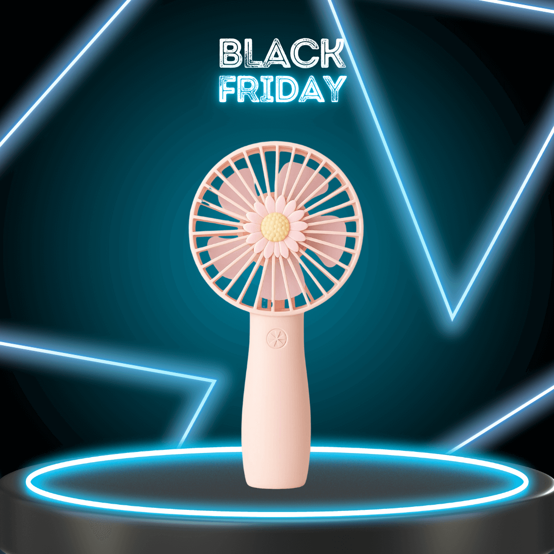 Mini Ventilador Portátil Flor Rosa – USB Recarregável